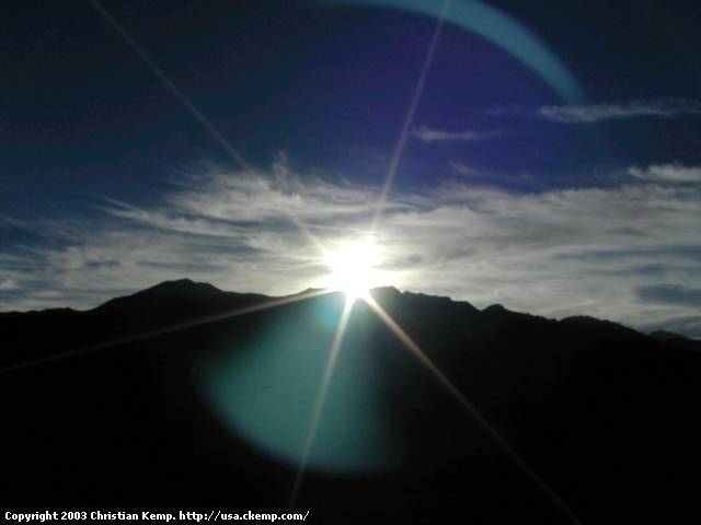 The sun rising over Last Chance Range, from Eureka Sand Dunes